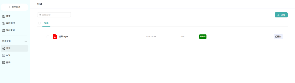 - 等待系统完成自动化处理,直至文件状态更新为“已转译”。