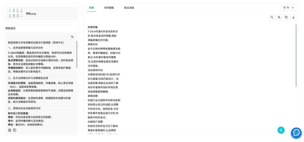 针对图片与PDF文档的数字化提取场景,该功能利用高精度光学字符识别技术提取文本信息,并辅以AI智能分析,将不可编辑的视觉资料转化为可检索、可分析的结构化数据。